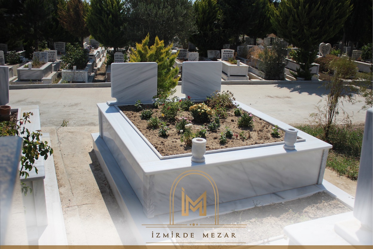 Marmara mermeri kullanarak özel CNC makinelerle tasarımını yaptığımız çift katlı ve iki kişilik olarak imal edilen mermer mezar modelimiz. Baş bölümlerinde 6cm kalınlıkta mermer baş taşı bulunuyor. Yan bölüm oturağı ve mezar etrafına çakıl taşı isteğe özel olarak yapılır